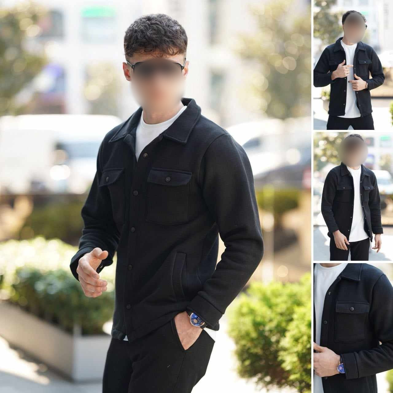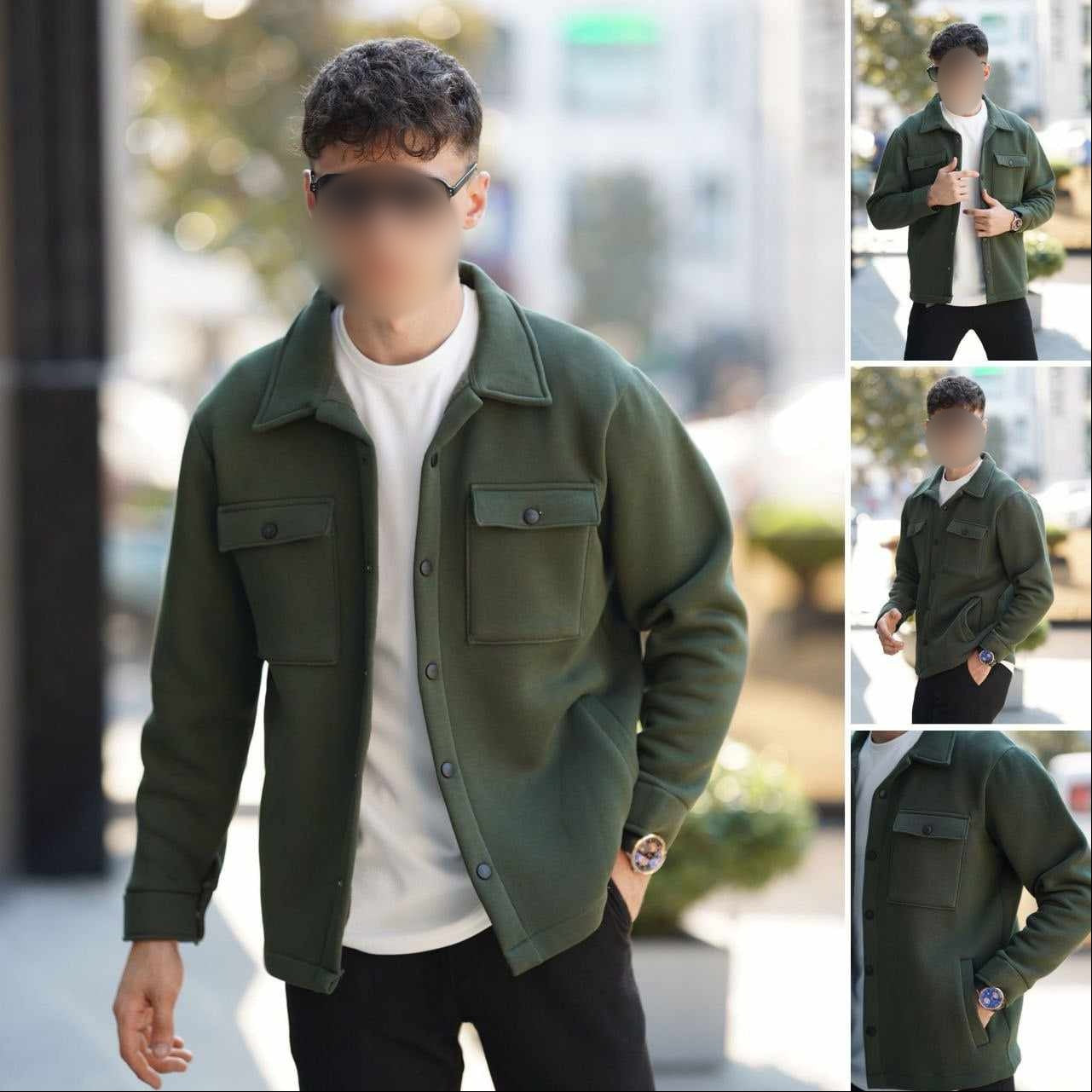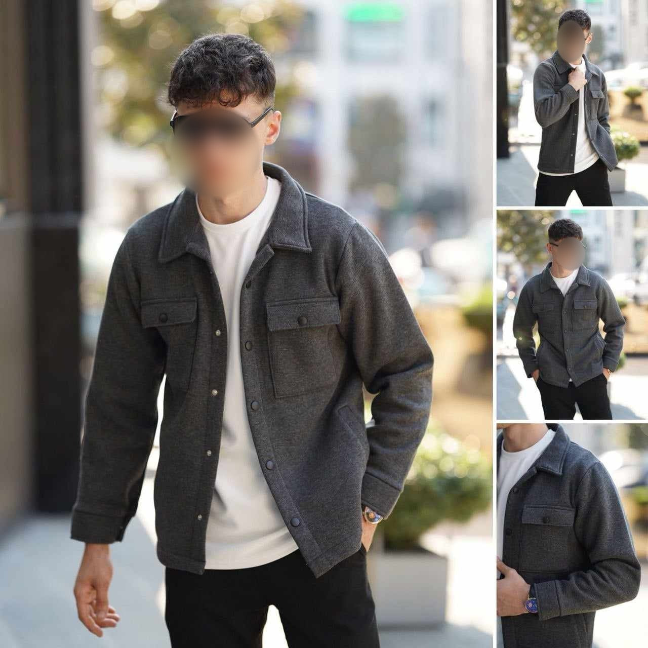 4-Pocket Collar Style Casual Fleece Winter Button Jacket D-2.