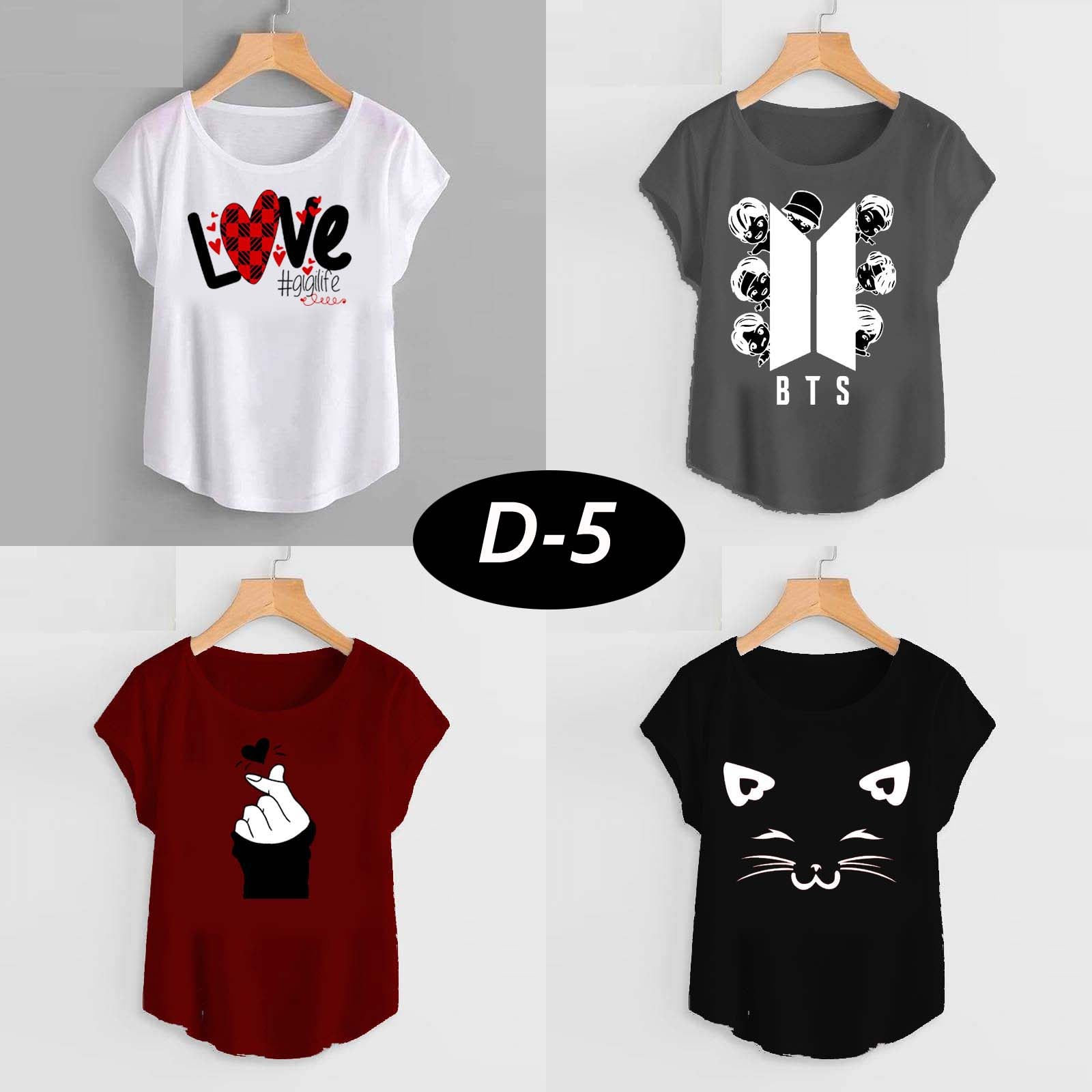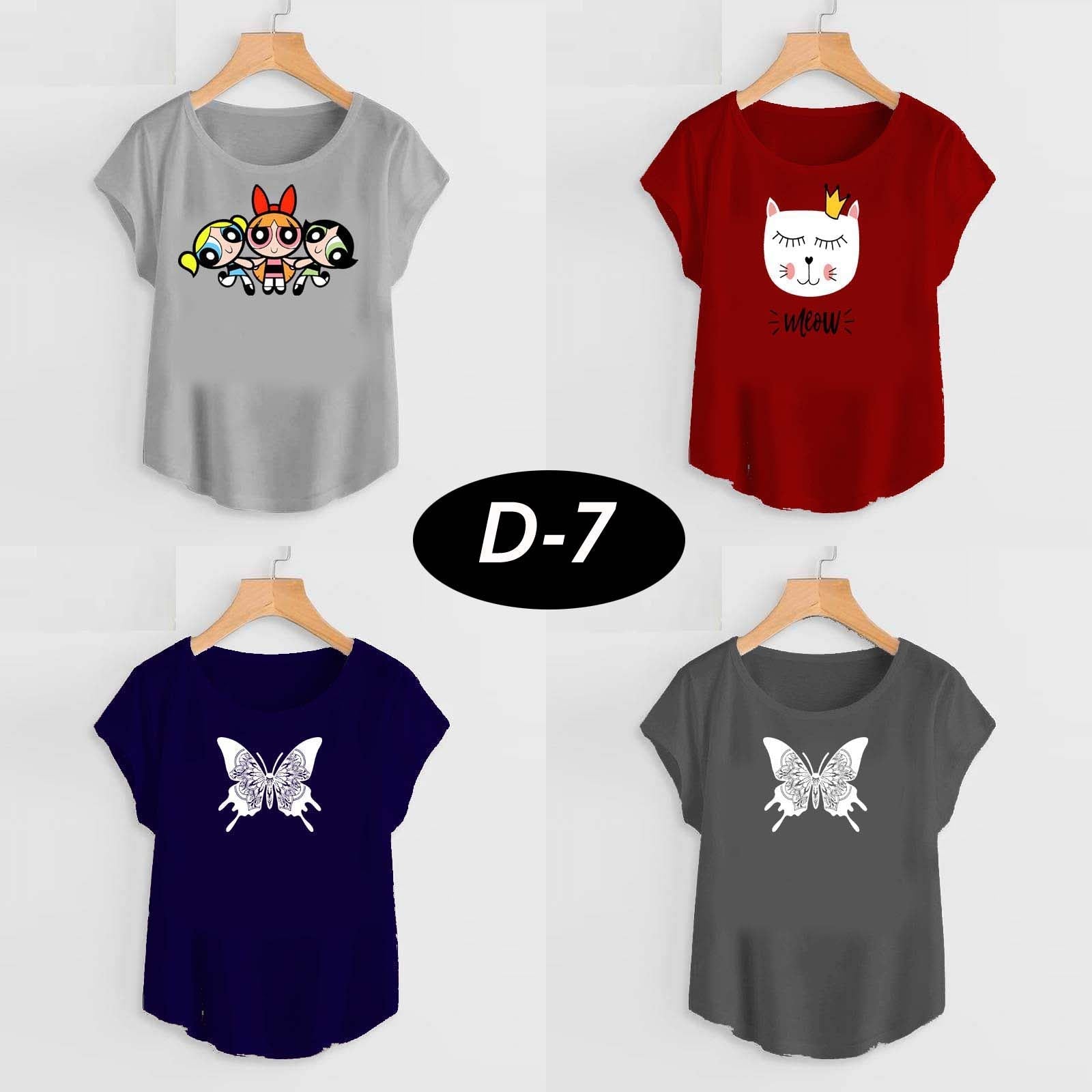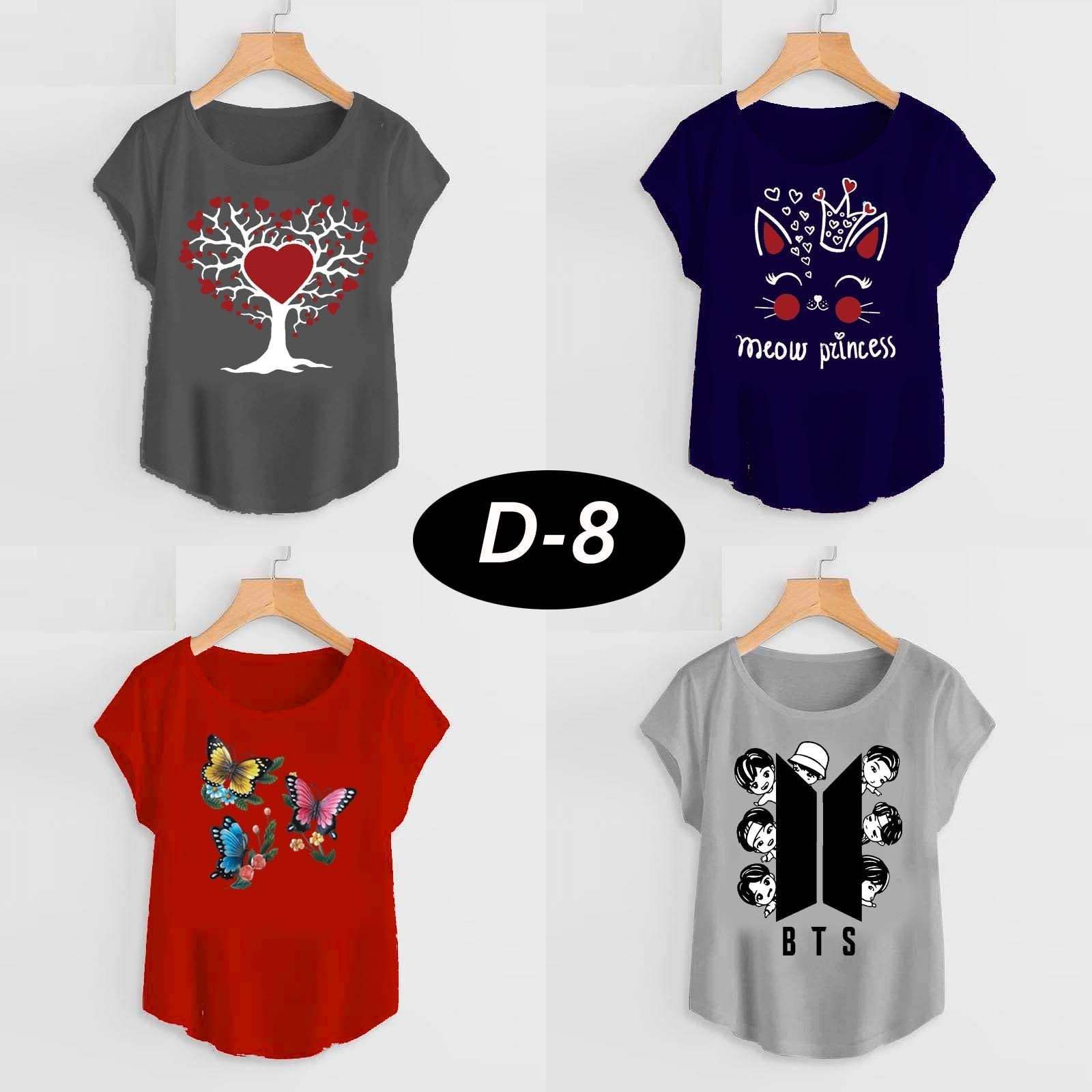 Bundle Of 4 Funky Cap-Sleeve Printed Tshirt's For Her.