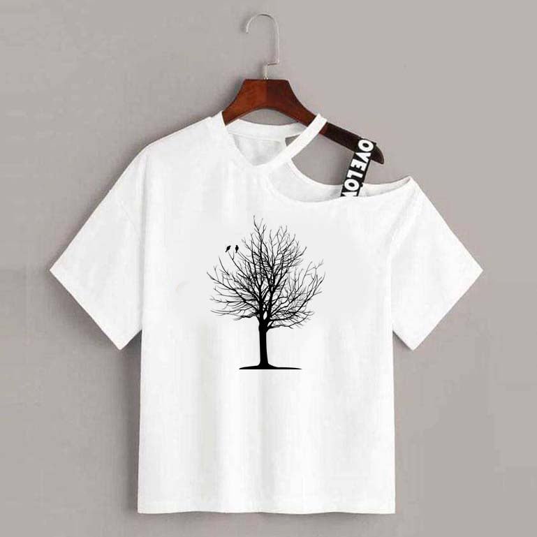 Crop-Top Design. Loose Pattern Printed Style