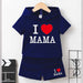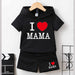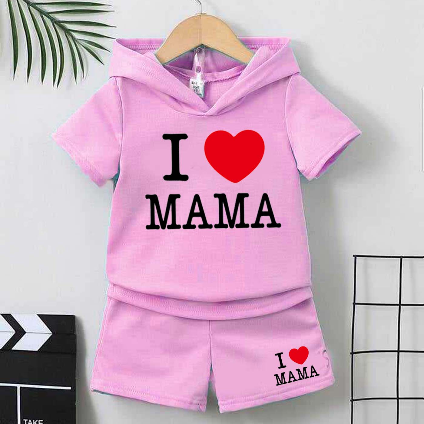 I Love MAMA Kids Hooded Style 2-Pcs Summer Suit. (HOTS+SH)