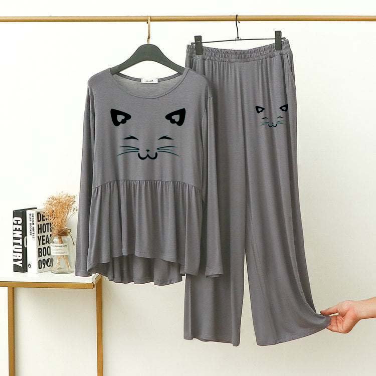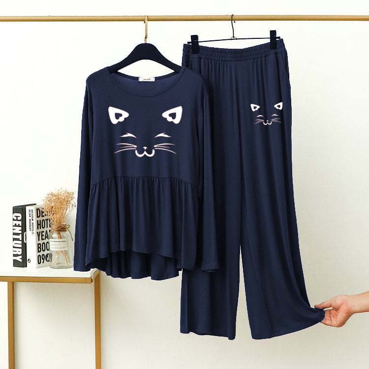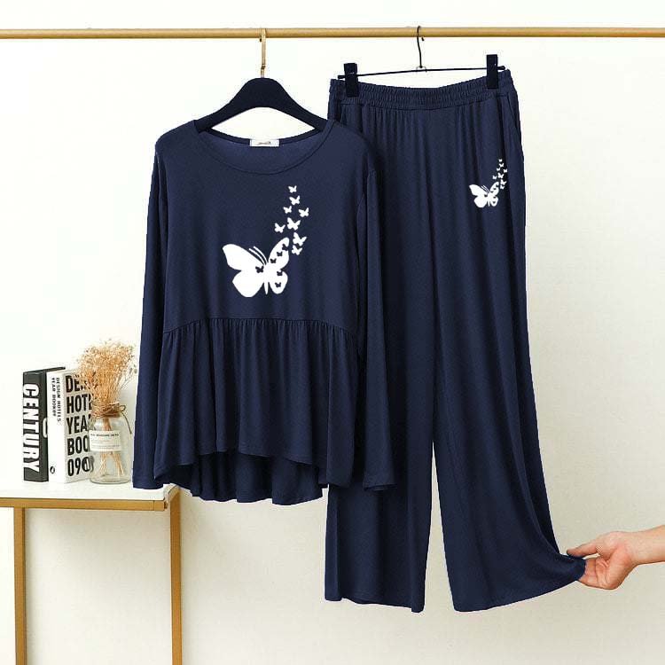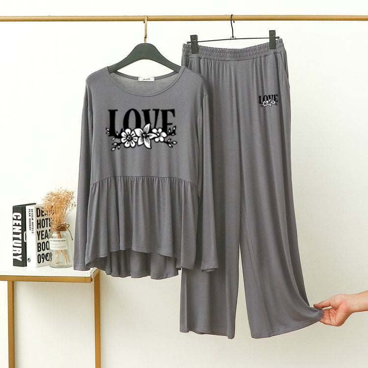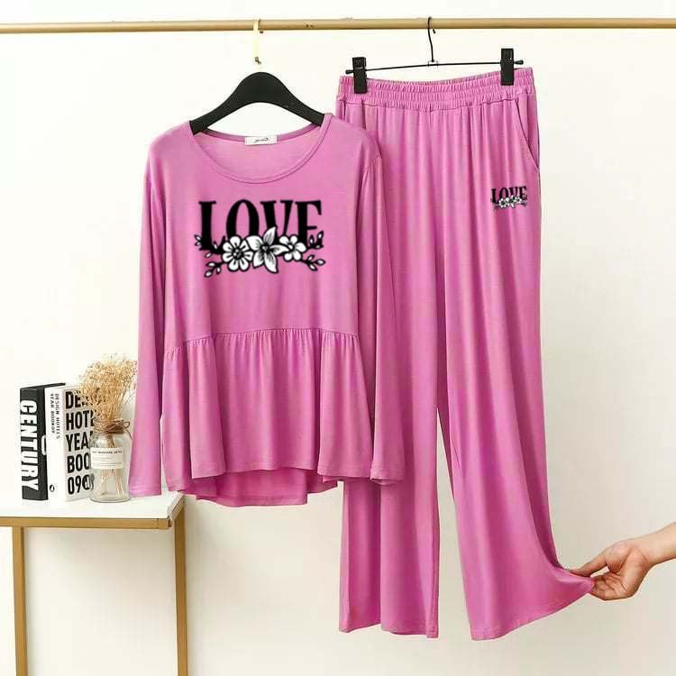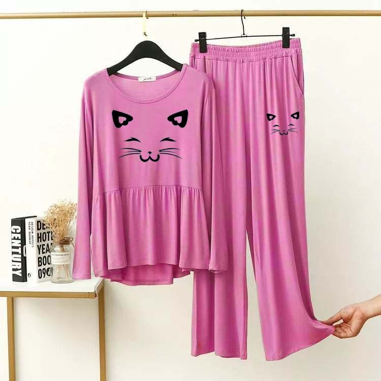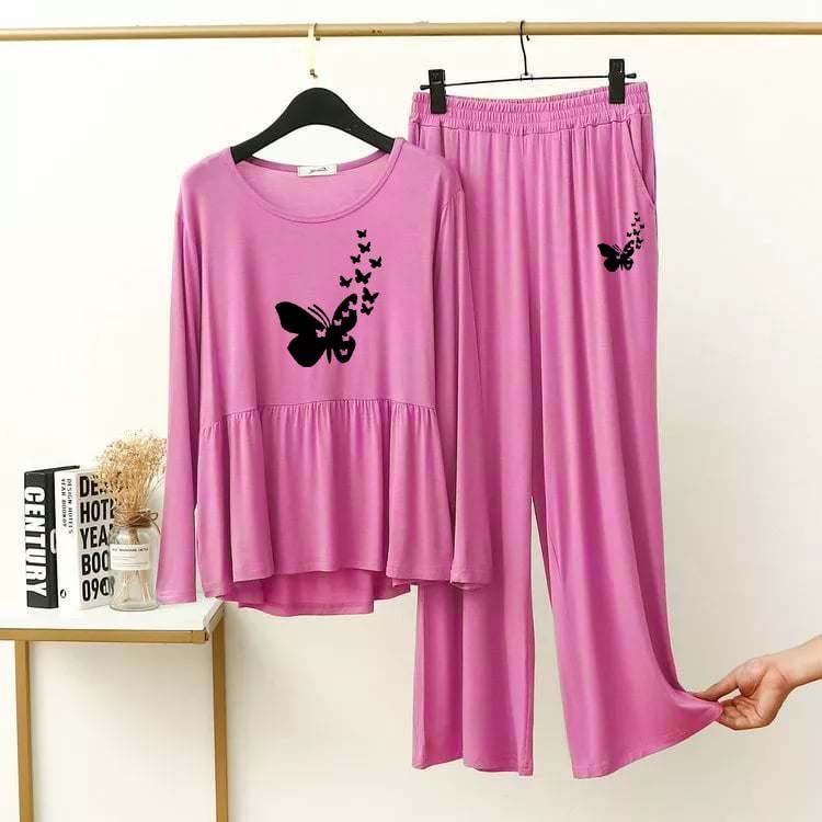Peplum-Style Printed 2-Pcs Lounge And Night Wear Suit. D-1